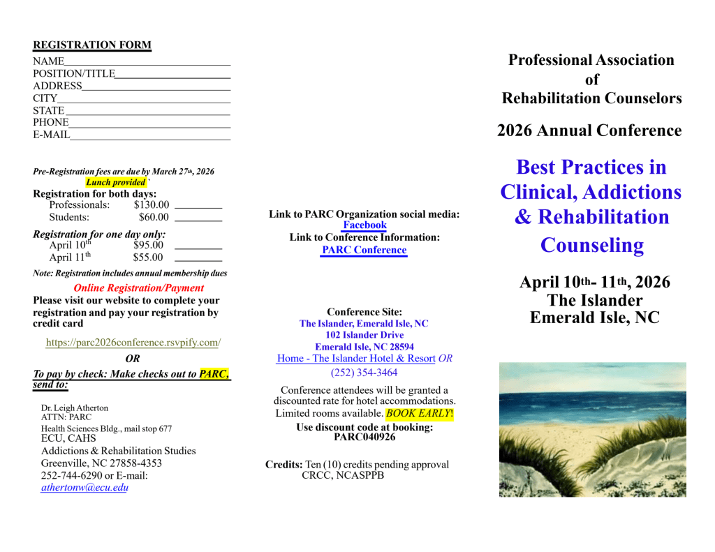 Call the property directly to reserve room under ‘PARC Conference’ reserved rooms